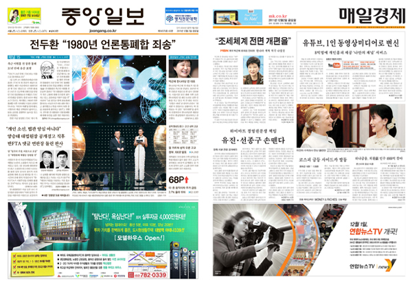 ▲ 중앙일보 2일자 1면(왼쪽)과 매일경제 1면. |