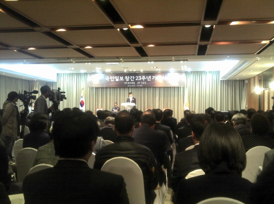 국민일보 23주년 창간기념식이 9일 오전 9시30분 서울 여의도 국민일보빌딩에서 열렸지만, 기자들의 집단퇴장으로 빛이 바랬다. 국민 노조 관계자는 “개인 비리혐의로 재판 중인 사장을 CEO로 인정할 수 없어 집단퇴장하게 됐다”고 설명했다.