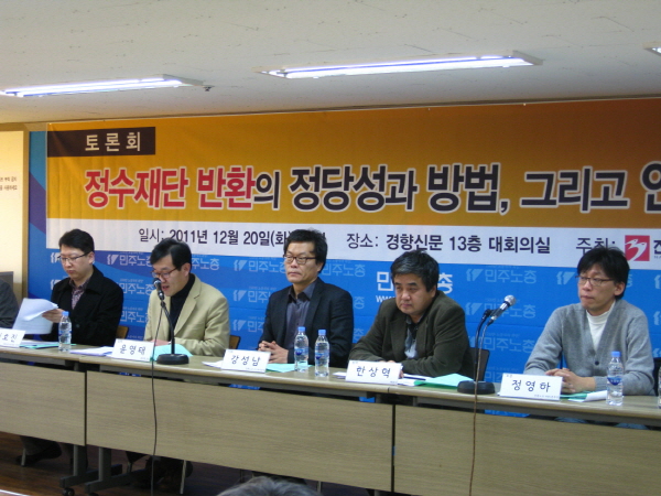 ▲ 언론노조는 20일 오후 2시 경향신문 13층 대회의실에서 정수재단 반환의 정당성과 방법을 주제로 한 토론회를 개최했다 |