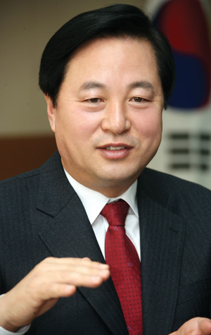 -정치권, 특히 여권에서 김두관의 대선 경쟁력을 높게 보는 흐름이 있습니다. 지역기반, 국정운영 경험, 세대교체 명분 등 상당한 비교우위가 있다고 하는데. 어떻게 생각하나요.“가끔 그런 이야기도 듣고 기사도 보는데 아마 이런 것 같습니다. 제가 한나라당의 아성인 경상도 전체에서 야권 시도지사로는 처음 당선된 점이 많이 작용하는 것 같습니다. 제가 나중에 큰 것 하려고 이장부터 했겠습니까만 이장부터 장관, 도지사까지 정치이력도 특이합니다. 또 지역주의에 맞서 싸웠고, 주류보다는 비주류의 길을 걸어와서 제가 가진 역량보다 높이 평가해 주시는 것 같습니다. 특히 아직까지 선거에서 지역변수가 크기 때문에 영남에서 한나라당을 깨뜨릴 수 있는 후보가 주목 받을 수밖에 없습니다. 그래서 저뿐 아니라 안철수, 조국, 박원순, 김정길까지 주목받는 것 같습니다.”