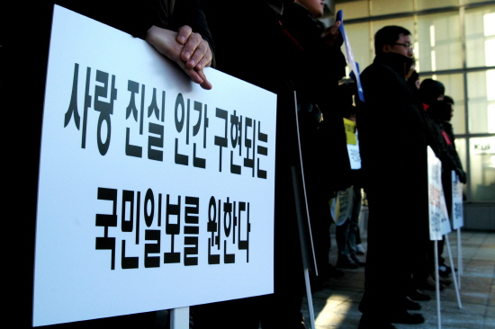 특집기획부의 김지방 기자는 “한 목사님이 ‘국민일보가 바로서야 한국교회와 한국사회가 바로 설 수 있다’는 말씀을 하셨다”며 “10년 전 노조가 싸운 만큼 회사가 발전해왔다. 부끄럽지 않은 신문을 만들기 위해 열심히 투쟁하겠다”고 밝혔다.