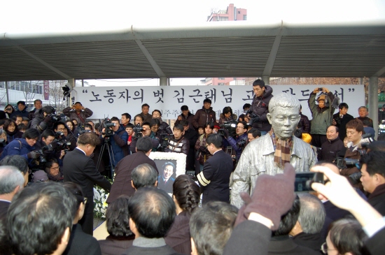 민주화 운동의 대부, 고 김근태 민주당 상임고문의 영정이 청계천 평화시장을 찾았다. 민주화 운동의 대부와 한국 노동자의 전설이 조우하는 순간이었다.