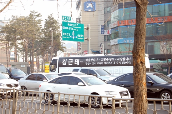 | ▲ 고 김근태 상임고문의 운구차량이 서울 흥인지문(동대문)을 빠져 나가고 있다. (원성윤 기자) | ||