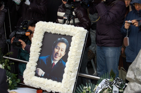 김 전 국장은 “돌아가신 뒤 서울대병원에도 찾아뵈었지만, 서울에서 보는 것은 이게 마지막이라고 생각해 오늘 노제에 참석하게 됐다”며 “기자시절 뵌 적은 없지만 내 나름대로 김 고문이 가시는 길에 최대한 경의를 표하고 싶었다”고 노제에 참석한 이유를 밝혔다.