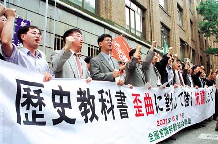 전국언론노동조합연맹(위원장 최문순)은 1일 일본교과서 왜곡과 관련, 일본 MIC(매스콤문화정보노조회의·의장 이마이 가쯔오)와 일본 문부과학성 앞에서 공동 항의 집회를 갖고 문부과학성측에 항의서한을 전달했다.