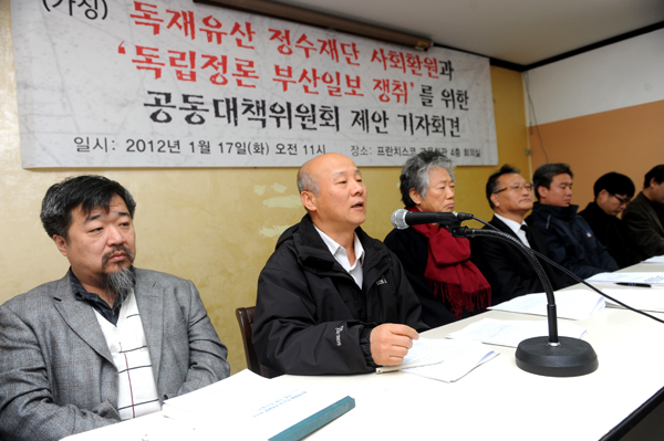 이들은 전국언론노조와 함께 17일 서울 정동 프란치스코 교육회관에서 기자회견을 하고 ‘(가칭)독재유산 정수재단 사회환원과 독립정론 부산일보 쟁취를 위한 공대위’ 구성을 시민사회와 학계, 언론계, 노동계 등에 제안했다. 이달 안에 공식 출범식을 가질 예정이며 실행위원회를 두고 서명운동, 박근혜 위원장 면담, 1인시위, 토론회, 광고, SNS 홍보 등을 펼칠 계획이다.