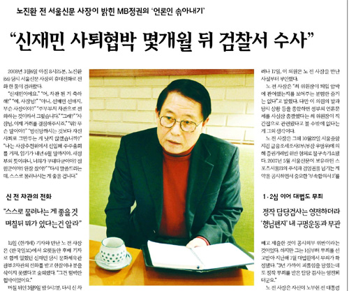 | ▲ 노진환 전 사장 인터뷰가 실린 한겨레신문 18일자 2면 | ||