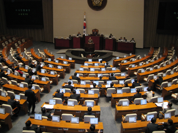 ▲ 당초 19일 오후 3시로 예정됐던 본회의가 오후 5시 22분 가까스로 열렸으나, 미디어렙법 등은 상정도 하지 못한 채 의사진행발언만 이어진 끝에 1시간 30분 만에 산회됐다. |