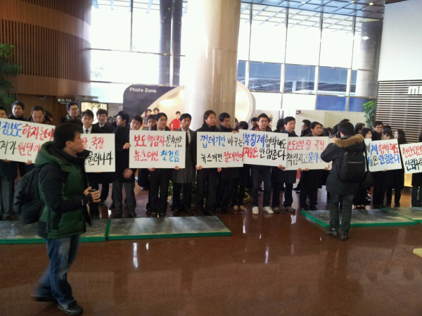 MBC 기자들은 25일 오전 보도국 편집회의실 앞과 1층 로비 등에서 출근길 피켓 시위를 벌인데 이어 오전 11시부터는 10층 임원실 앞에서 침묵시위를 벌이고 있다. 오후 2시에는 기자총회를 열어 향후 투쟁 방향 등을 논의할 예정이다.
