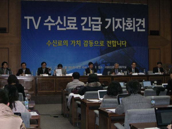 KBS가 2월 임시국회를 앞두고 수신료 인상을 위해 본격적인 여론몰이에 나섰다. KBS는 1일 ‘TV 수신료 긴급 기자회견’을 열고 수신료 인상안의 조속한 처리를 주문하고 나섰다. 이달 임시국회에서 수신료 인상안이 처리되지 않을 경우 사실상 김인규 사장 체제에서 수신료 인상을 기대하기 힘들다고 판단한 것으로 보인다.