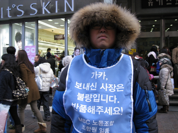▲ MBC노동조합이 파업 닷새째인 3일, 명동 거리로 나가 대국민 선전전을 벌였다. |