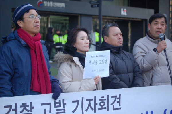 미디어행동·조중동방송퇴출무한행동·전국언론노동조합은 3일 서울 세종로 방송통신위원회 앞에서 기자회견을 열어 최시중 전 방송통신위원장을 검찰에 고발한다고 밝혔다.