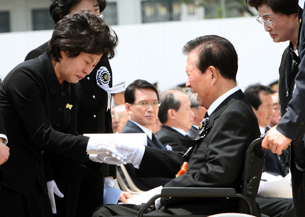 ▲ 故김종수 기자가 생전에 카메라에 담은 사진. 김대중 전 대통령이 2009년 5월29일 노무현 전 대통령 영결식에서 노 전 대통령의 부인 권양숙씨의 손을 잡은 채 통곡하고 있다. |