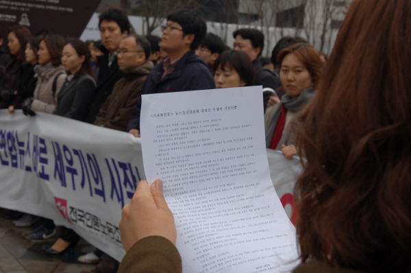 그는 “사측은 사장 연임을 결정하는 뉴스통신진흥회 이사회 개최 직전에도 대화를 하자고 하더니 결국 결과는 다를 바 없었다”며 “지난 12월 내부 기수별 성명이 이어질 때도 간담회에 응했지만 아무것도 얻은 게 없었다”고 지적했다.