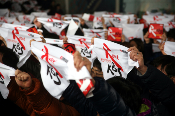 KBS본부는 6일 파업 출정식을 갖고 “그동안 우리는 언론인의 본분은 팽개치고 권력의 하수인이 되었다”고 반성하며 “이제 우리의 길을 다시 찾고자 한다”고 밝혔다.