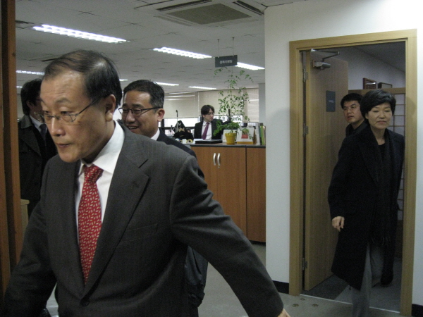 ▲ 김재철 MBC 사장이 7일 방문진 현안보고를 마치고 사무실을 나서고 있다. |