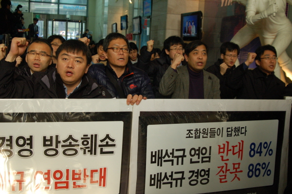 YTN노조는 9일 배석규 사장 연임 안건이 상정된 주주총회가 열리는 서울 남산타워 앞에서 KBS, MBC 노조와 연합집회를 가질 예정이다.