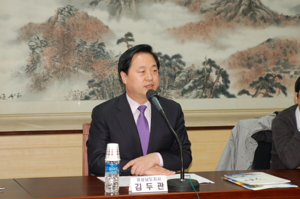김두관 경남도지사는 경남 창원에 위치한 도청 회의실에서 재외동포기자단과 만나 ‘공동지방정부’ 및 ‘민주도정협의회’에 대해 설명했다.