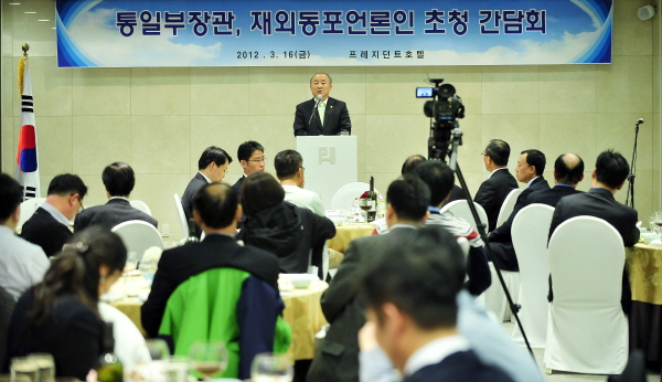 | ▲ 2012재외동포기자대회 마지막 공식일정인 류우익 통일부장관과의 간담회가 16일 중구 을지로1가 프레지던트호텔 19층에서 열렸다. (뉴시스) | ||