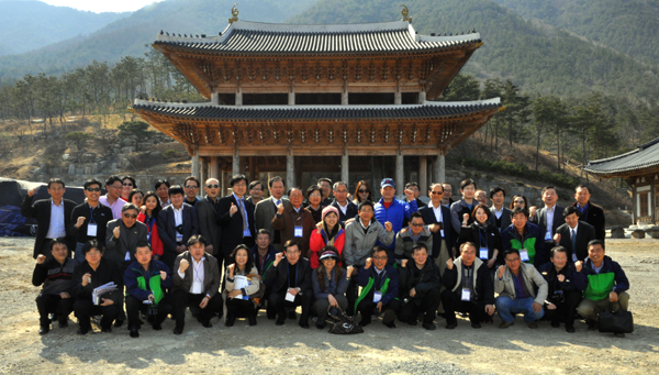 ▲ 15일 방문한 경남 산청세계전통의약엑스포장에서 재외동포기자단이 파이팅을 외치고 있다. |