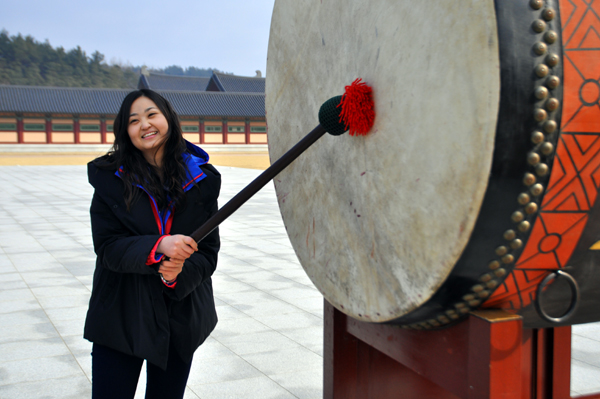 ▲ 14일 충남 부여 백제문화단지에서 문화체험을 하고 있는 미주기독일보 권나라 기자. |