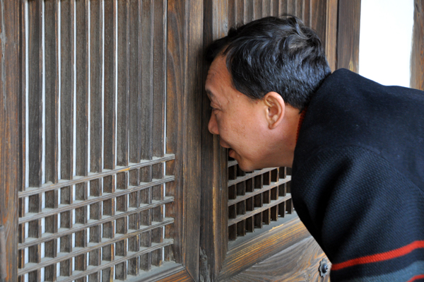▲ 14일 방문한 경남 창녕성씨 고택의 안을 들여다보고 있는 중국 흑룡강방송국 허룡호 사장. |