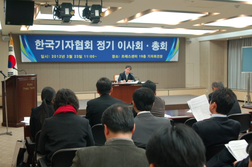 | ▲ 2012 한국기자협회 제1차 정기 이사회 및 총회가 23일 서울 중구 프레스센터 19층 기자회견장에서 열렸다. | ||