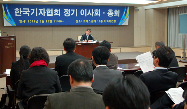 ▲ 2012 한국기자협회 제1차 정기 이사회 및 총회가 23일 서울 중구 한국프레스센터 19층 기자회견장에서 열렸다. |