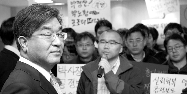 이에 노조는 박 사장이 특위나 불신임투표에 미루지 말고 스스로 퇴진을 결단해 시점을 못 박을 것을 요구하고 있다. 당장은 아니더라도 가까운 시일 내에 물러나겠다는 약속이 확실하게 전제되면 제도 개선을 위한 논의에 참여해 박 사장이 명예롭게 퇴진할 수 있는 조건을 마련해주겠다는 것이다.