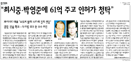 | ▲ 23일 한겨레신문 1면 톱기사 | ||