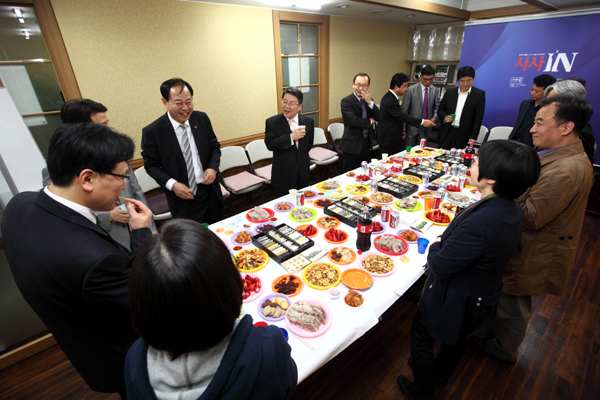 ▲ 23일 오후 서울 중구 중림동 시사IN 사무실에서 ‘시사IN을 사랑하는 사람들의 모임’ 회원 등이 모여 집들이를 열었다. (시사IN 제공) |