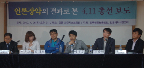 26일 서울 정동 프란치스코회관에서 열린 전국언론노동조합·언론개혁시민연대 주최 ‘언론장악의 결과로 본 19대 총선 보도’ 토론회에서 이 같은 주장이 제기됐다.