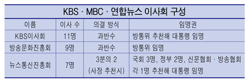 공영 언론사 이사회 개혁의 쟁점은 이사회 구성과 특별 다수제 채택이다.