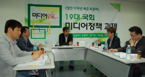 | ▲ 10일 서울 동교동 가톨릭청년회관에서 열린 미디어오늘 창간 17주년 특집 토론회 ‘19대 국회 미디어정책 과제’에서 참석자들이 의견을 교환하고 있다. | ||