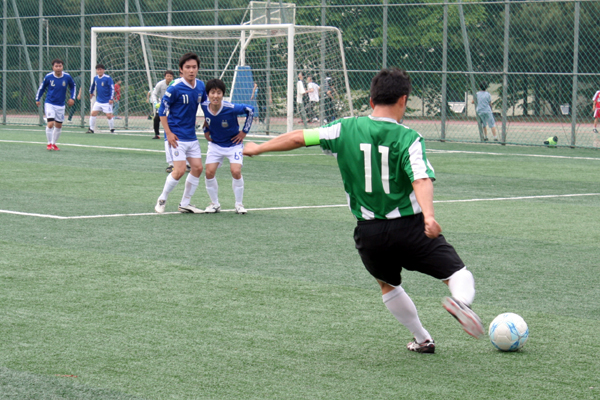 ▲ 지난 대회 우승팀인 동아일보와 1회전을 부전승으로 올라온 농민신문의 32강전에서 동아일보 선수가 농민신문 문전으로 공을 올리고 있다. |