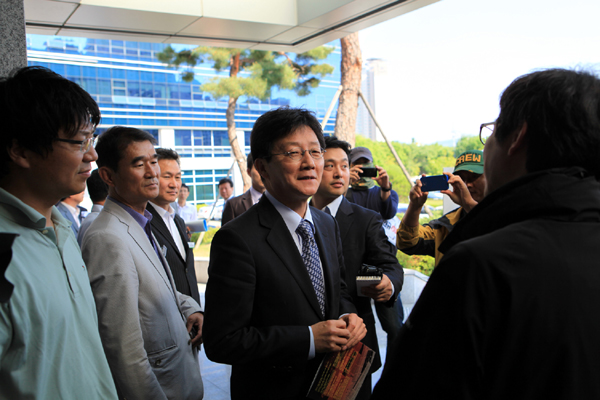 유승민 의원은 21일 대구시교육청에서 열린 교육정책 간담회에 앞서 파업 중인 대구MBC와 KBS 노조 조합원들을 만나 “이한구 의원이 불법 정치파업이라고 말씀하신 것은 본인 개인 생각”이라며 “정치파업은 아니라고 생각한다”고 밝혔다.