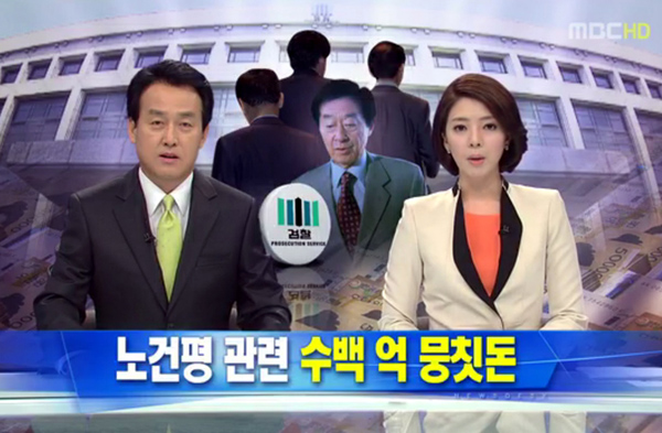 ▲ MBC는 지난 18일 ‘뉴스데스크’에서 톱뉴스로 노건평씨 ‘뭉칫돈’ 의혹을 보도했다. (MBC 뉴스 캡처) |
