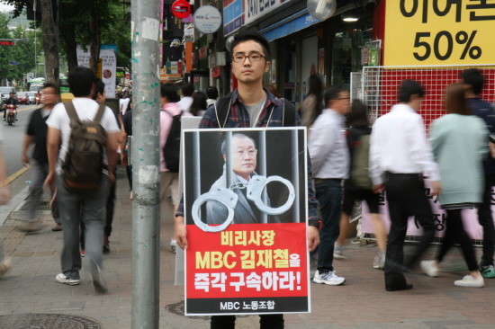 | ▲ MBC 노조 한 조합원이 피켓시위를 벌이고 있다. (사진 MBC 노조 제공) | ||
