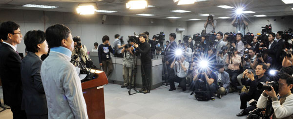한 일간지 기자는 “조금이라도 지각하는 날엔 자리를 찾아 한참을 서성거려야 한다”며 “자리가 있더라도 기둥 뒷좌석 정도여서 ‘정론관 자리전쟁’이 벌어지고 있다”고 귀띔했다.