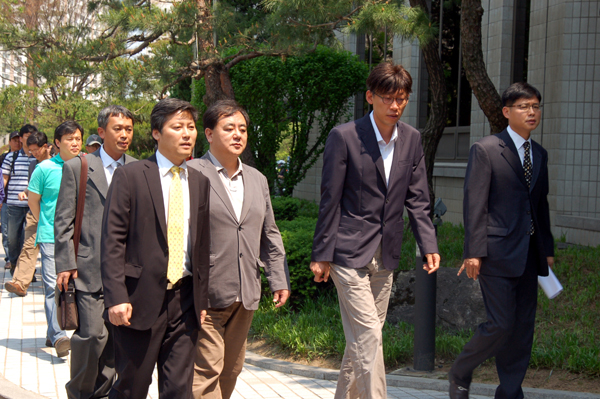 | ▲지난달 21일 첫 영장실질심사 출석을 위해 서울남부지방법원에 들어서고 있는 MBC노조 집행부들. | ||