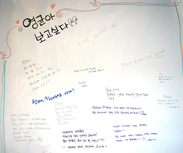 ▲ 오마이뉴스 김영균 전 사회팀장의 쾌유를 비는 사원들의 글들. (오마이뉴스 제공) |
