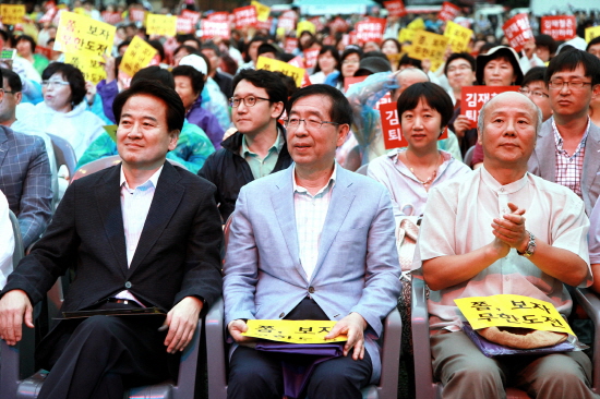 | ▲ 박원순 서울시장(가운데)이 MBC 파업콘서트에 참석해 공연을 관람하고 있다. (사진 MBC 노조 제공) | ||