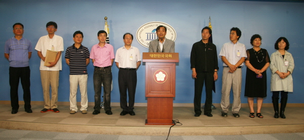 민주노총, 전국언론노조, 민언련, 언론연대도 이날 여의도 국회 정론관에서 기자회견을 열어 “새누리당의 ‘여왕’인 박근혜 전 비대위원장이 대통령으로 선출된다면 이 나라를 어떻게 다스려갈지를 미리 보여주는 상징적 사건”이라며 “문방위원장 내정을 즉각 철회하고 지금이라도 불법도청 진상규명을 위한 특별검사 임명법안을 처리해 도청의혹에 대한 실체적 진실을 명명백백하게 밝힐 것”을 요구했다.