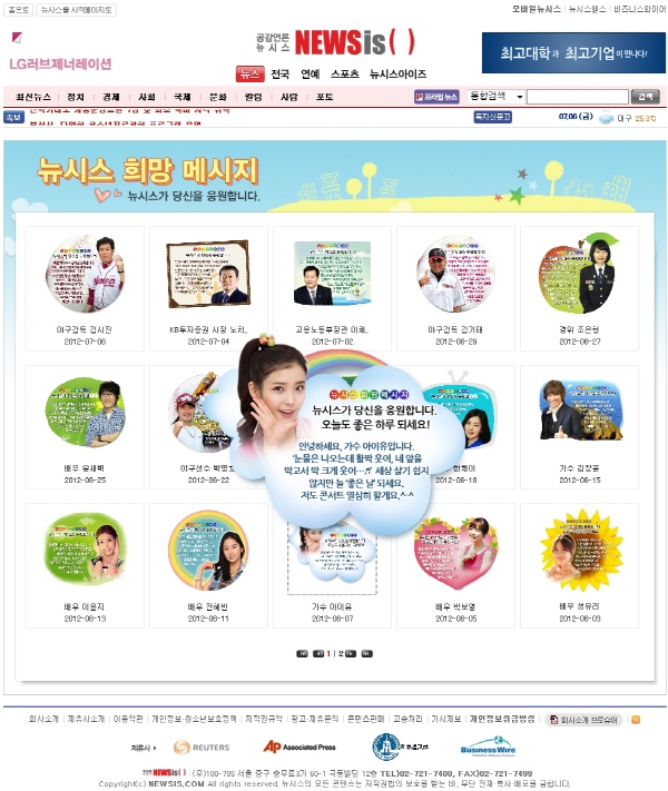 ‘오늘은 뉴시스 홈페이지에 들어가면 누가 희망 메시지를 전달해줄까?’