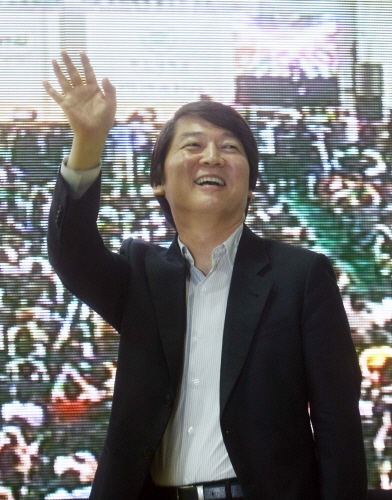 ▲ 안철수 서울대 융합과학기술대학원장이 지난 5월30일 오후 부산대 실내체육관에서 마련된 강연에 참석, 학생들에게 손 흔들어 인사하며 입장하고 있다.(뉴시스) |