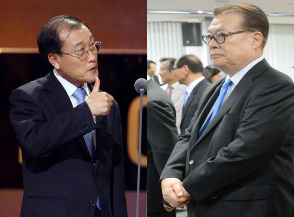 | ▲ MBC 안팎에서 동시에 사퇴 요구를 받고 있는 김재철 MBC 사장(왼쪽)과 김재우 방송문화진흥회 이사장. (뉴시스) | ||