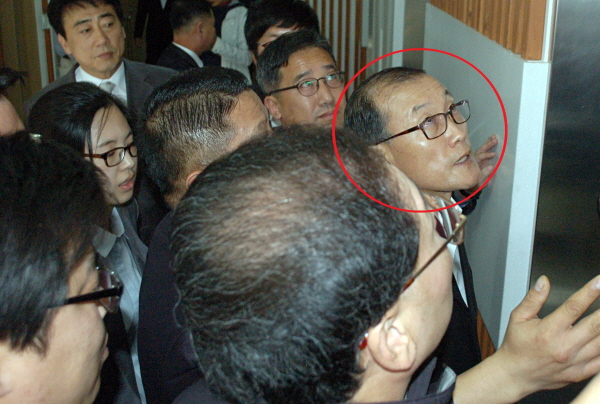 | ▲ 김재철 MBC 사장이 11일 열린 방문진 이사회에 참석했다 기자들의 질문을 받자 엘리베이터를 물끄러미 쳐다보며 초조한 모습으로 서 있다. | ||