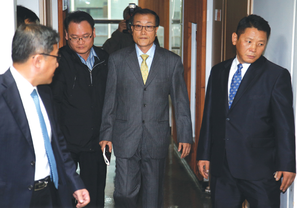 ▲ MBC 김재철 사장이 16일 오후 서울 영등포구 여의도동 방송문화진흥회에서 열린 임시이사회에서 정수장학회 지분매각과 관련한 입장을 표명하기 위해 이사회장으로 향하고 있다. (연합뉴스) |