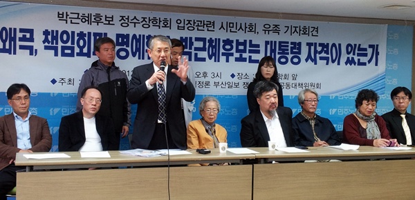 공대위는 기자회견문을 통해 “박근혜 후보는 정수장학회 입장 기자회견에서 역사적 사실을 왜곡했고, 언론장악 현실을 철저히 외면했다”며 “최소한 결자해지를 바라는 국민들의 요구를 한낱 정쟁으로 몰았다”고 비판했다.