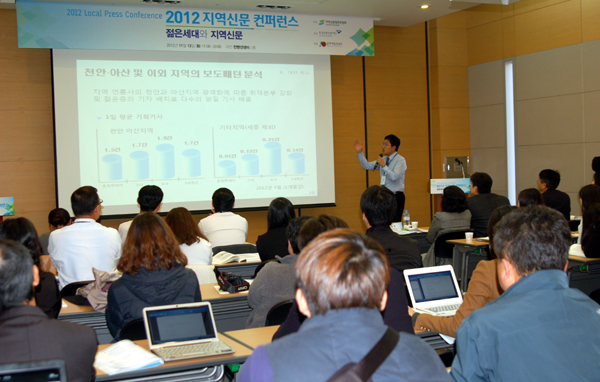 지역신문발전위원회(위원장 최창섭)는 13일 대전시 유성구 컨벤션센터에서 ‘2012 지역신문 컨퍼런스’를 열어 지역신문의 우수사례를 공유하고 지원사업의 성과를 확인했다. 컨퍼런스에는 지역신문발전기금 우선지원 대상사와 지역신문사, 전국의 신문방송학과 교수와 학생 등 500여 명이 참가했다.